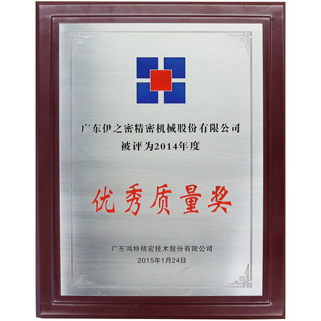 On January 24, 2015, Yizumi received “Outstanding Quality Award” from Hongte Company that selected the award winner among its suppliers according to their performance in technical strength, product quality, service, lead time and other aspects. This award was also in recognition of Yizumi’s excellent performance as a supplier and Yizumi’s contribution to Hongte Company’s business development.