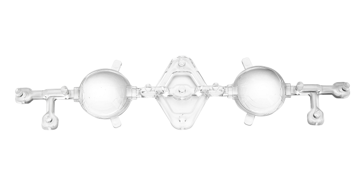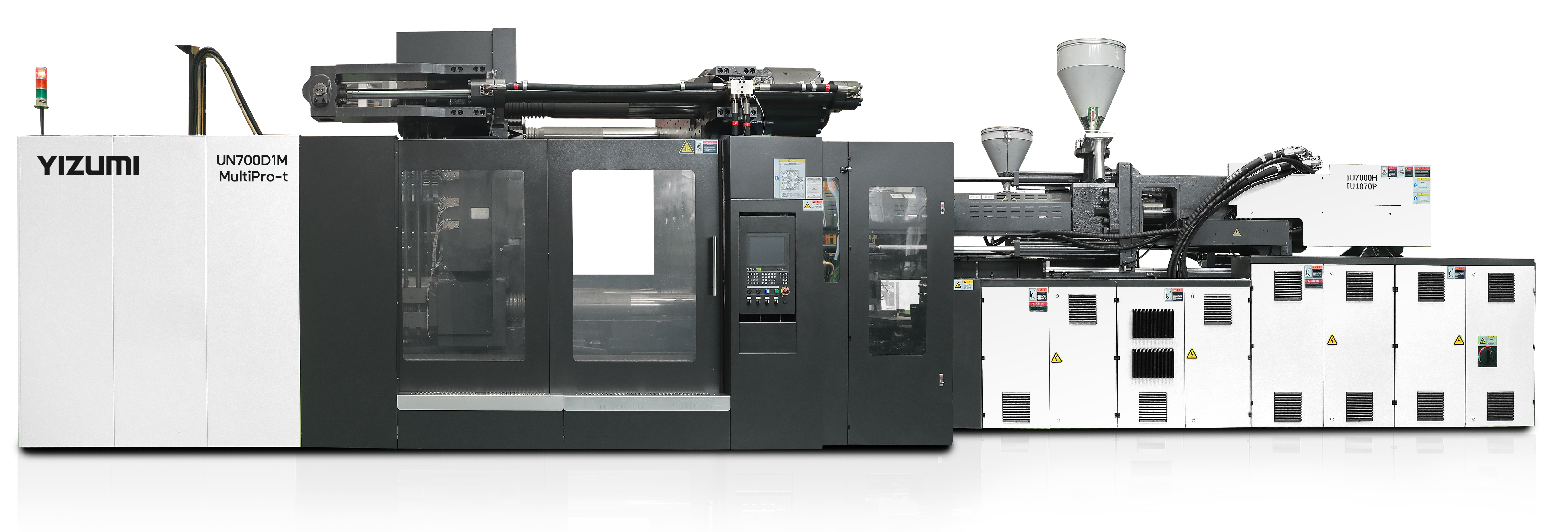 During the CHINAPLAS, YIZUMI's UN700D1M two-platen injection molding machine will demonstrate the solution for molding thick-wall lenses on-site. This solution utilizes two injection units and six stations to achieve one-shot molding. While ensuring product transparency, the maximum thickness of the product reaches 19.5mm. The molding cycle has been reduced from the original over 400 seconds to approximately 60 seconds, resulting in an 85% increase in production efficiency. A four-axis robot is employed for part retrieval, followed by laser trimming of the sprue. Subsequently, visual inspection is carried out to detect product defects and assess the quality of sprue trimming. Approved products are then packaged and boxed.