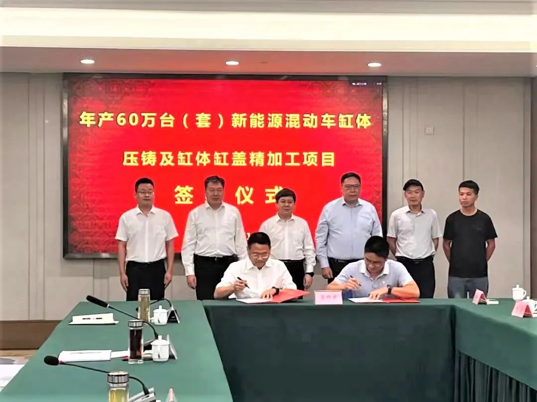 Recently, the signing ceremony with a subsidiary of Changyuan Donggu for the project "Annual output of 600,000 sets cylinder block die-casting parts for hybrid electric vehicles (HEVs) and fine finishing of cylinder blocks and heads" was successfully conducted in Laohekou City, Hubei Province.