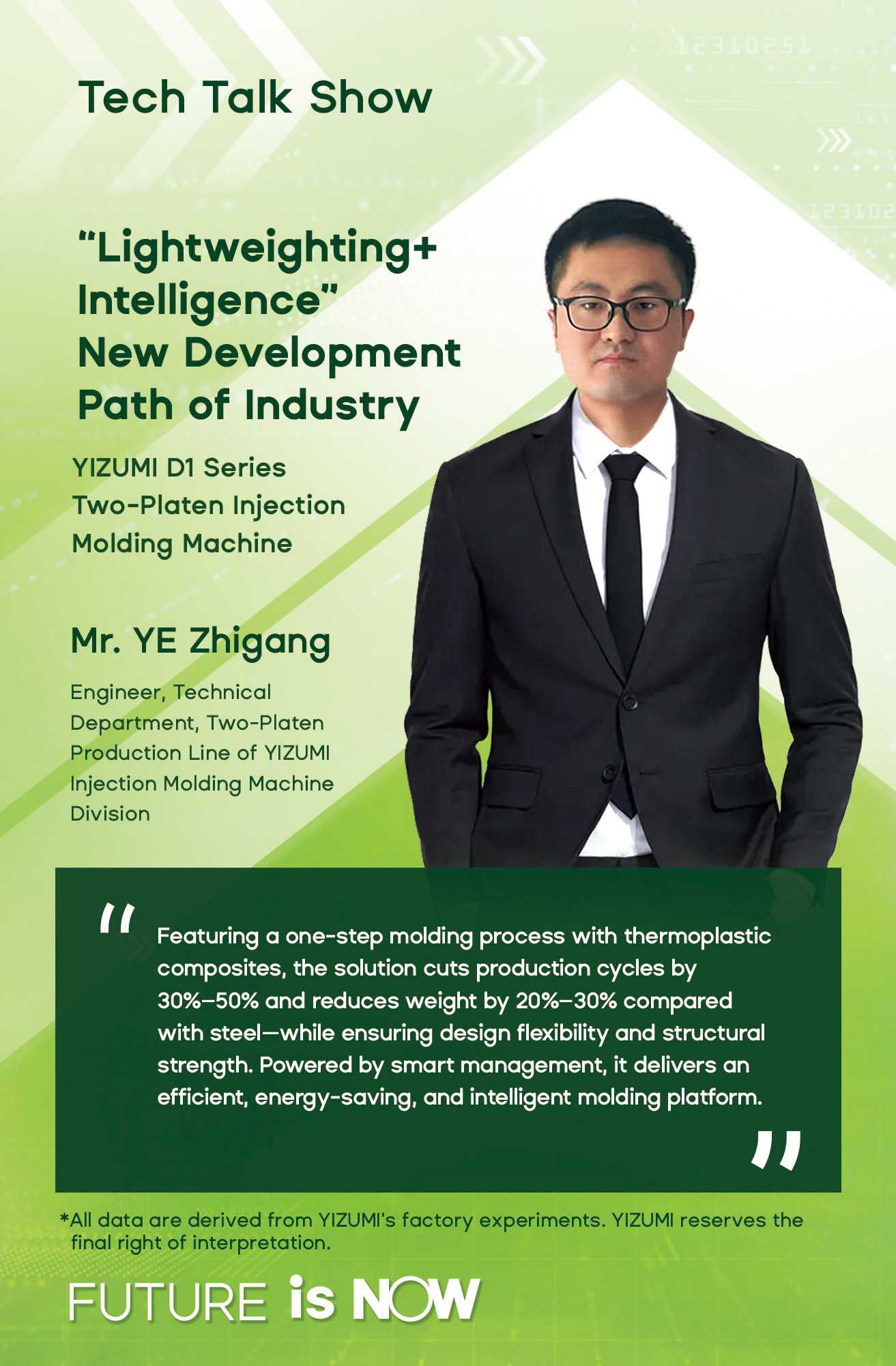 During K 2025, YIZUMI grandly unveils groundbreaking new technology, Thermoplastic Composite Injection Molding Solution for Automotive Lightweighting, setting new benchmarks in the automotive injection molding.