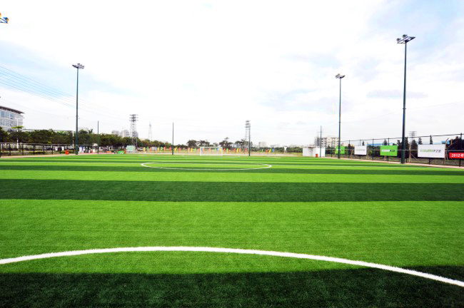 7人標準足球場:45米×70米,綠色環保的人造草材質,密度均勻,酷似天然草坪;緩沖作用良好,有效防止側滑,保證球的彈性和滾動正常。配置專業燈光,燈光亮度可支持電視臺現場直播。