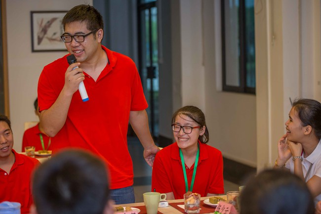 15:30,伊哥及家屬來到經(jīng)過悉心布置的高黎小飯?zhí)茫谳p松舒適的環(huán)境下開始一趟暢聊之旅。伊哥們在此分享了他們在伊家的成才和難忘的趣事,跟家人口述家書。期間,我們還為本月生日的伊哥及家屬舉辦了生日會,送上生日祝福。