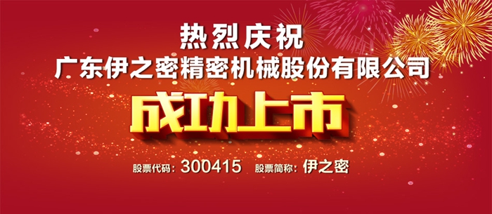 今晨(2015年1月23日)9時25分,伴隨著深圳證券交易所(“深交所”)上市寶鐘清脆的敲擊聲,廣東伊之密精密機械股份有限公司(“伊之密”,股票代碼:300415)成功登陸深交所A股市場。