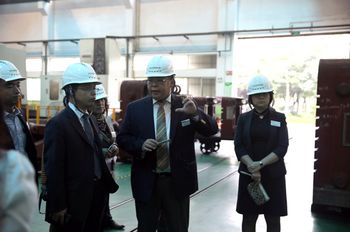 伊之密董事總經(jīng)理甄榮輝(左二)陪同媒體朋友們參觀壓鑄機車間 伊之密董事總經(jīng)理甄榮輝(左二)陪同媒體朋友們參觀橡膠注射機車間