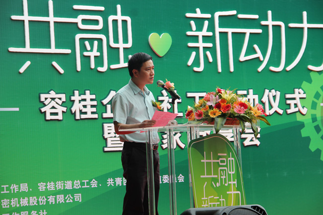 5 30 上午930,“共融?新動力——容桂企業社工啟動儀式暨專家分享會”在伊之密召開,本次活動是由容桂街道社會工作局、總工會、團委主辦,廣東伊之密精密機械股份有限公司承辦,容桂鵬星社會工作服務社協辦。共青團順德區委員會、順德總工會、容桂街道辦、容桂工會等相關領導代表、順德區各企業代表及伊之密職工代表出席會議,參加會議人數達200余人。這是容桂街道推進社工工作發展的又一新嘗試——即啟動容桂企業社工服務,成立高新園區社工服務站及“伊哥社工服務室”。伊哥社工服務室是佛山地區第一個企業社工服務室。