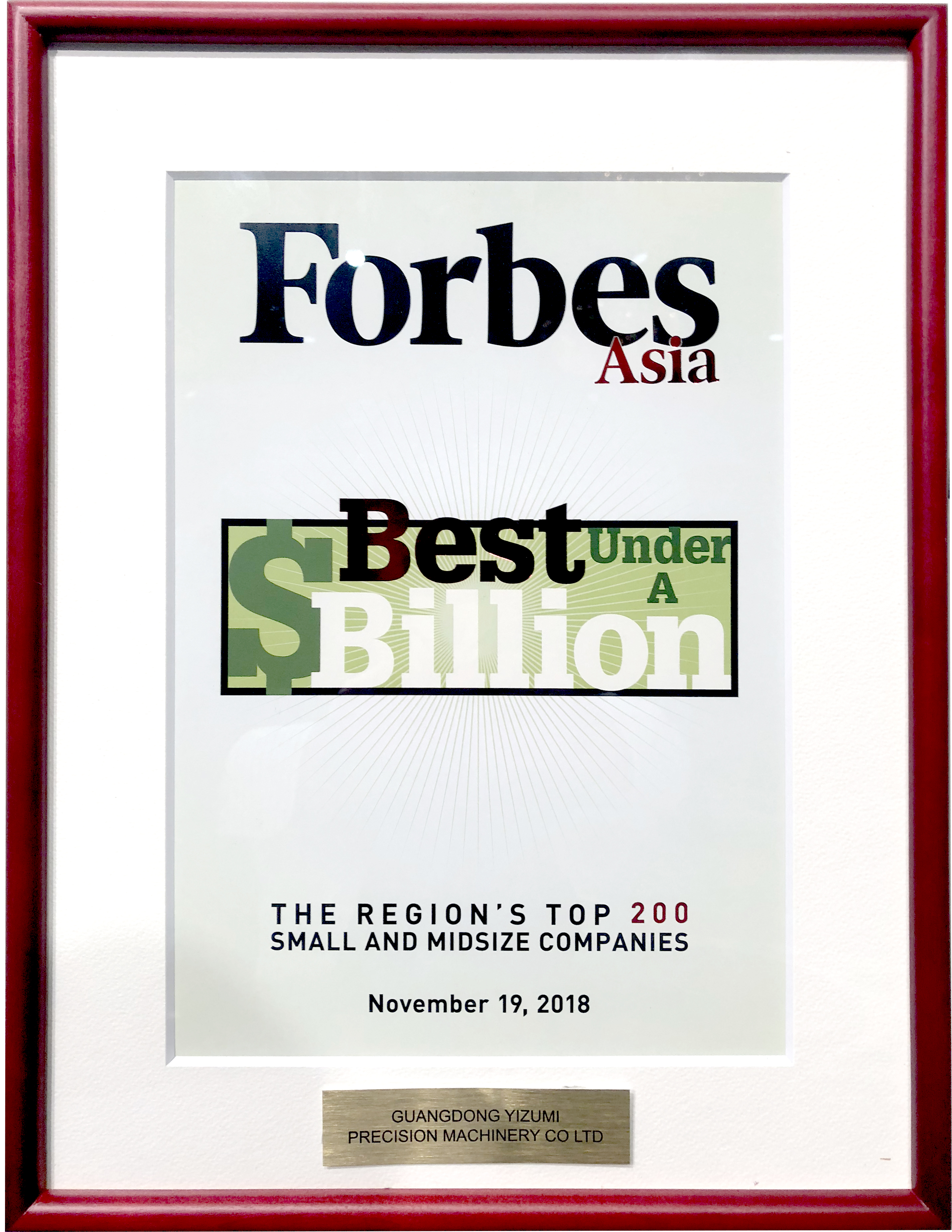 廣東伊之密精密機械股份有限公司獲全球著名媒體福布斯認可,入選2018亞洲最佳中小上市企業200強榜單(Best Under A Billion)。福布斯亞洲特舉辦論壇和頒獎晚宴,對這200家最佳中小上市企業所取得的成功予祝賀和褒獎。