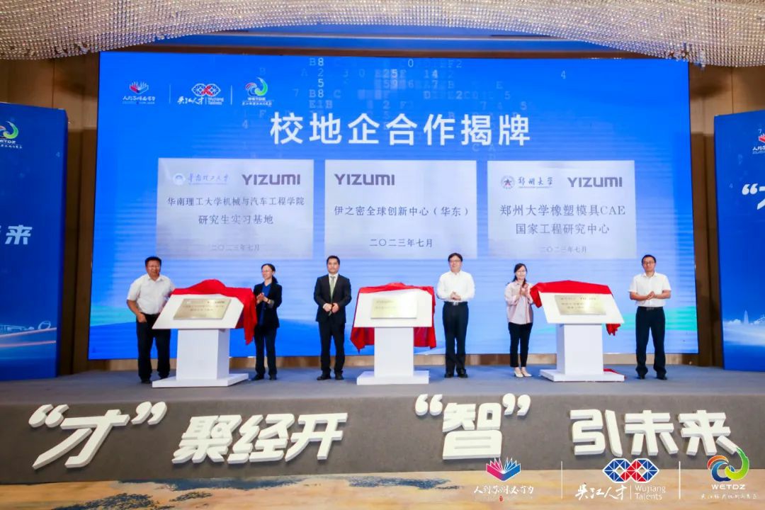 活動舉行了校地企合作揭牌。吳江開發(fā)區(qū)黨工委委員沈建興先生,伊之密集團副總經(jīng)理兼首席技術(shù)官周俊先生,華南理工大學(xué)馮彥洪教授,伊之密精密機械(蘇州)有限公司產(chǎn)品線總監(jiān)侯永平先生,鄭州大學(xué)董斌斌教授,伊之密精密機械(蘇州)有限公司技術(shù)部高級經(jīng)理齊明超先生一同上臺參與揭牌儀式。此次揭牌進一步為校地雙方在人才培養(yǎng)、就業(yè)育人、科技創(chuàng)新、產(chǎn)學(xué)研合作等方面提供深度的合作機會,進一步探索并實踐出成熟的、有效的、長期的校地合作模式。此外,活動還進行了人才路線發(fā)布以及全球高校數(shù)字素養(yǎng)賦能項目發(fā)布。將進一步為開發(fā)區(qū)進一步數(shù)字化轉(zhuǎn)型提供人才支持和智力支撐。