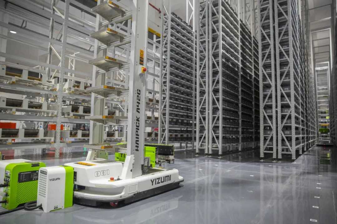 通過整合 FMS 柔性制造系統、自動化物流系統及定制化 MES 生產管理系統,工廠實現 90T-320T 注塑機混線生產,實現生產節拍15 分鐘 / 臺,月產能1000 臺。相較于傳統生產模式,生產周期縮短 30.48%,運營成本降低了 38.18%,用數據詮釋了 “效率革命” 的真正含義。靈活性與智能化的深度融合,是工廠的另一大亮點。預裝區的雙聯動 AGV 方案,讓大型零組件轉運靈活自如;射臺與鎖模組件裝配流水線配備自動化翻轉機構、助力機械手等設備,全員勞動生產率提升了 31.69%;智能中心倉儲通過托舉式 AMR、無人叉車等實現全流程自動化,減少 70% 人力投入,極大提升庫存周轉率。從零部件預裝到整機裝配,智能化設備無縫協作,構建起高效運轉的制造網絡。