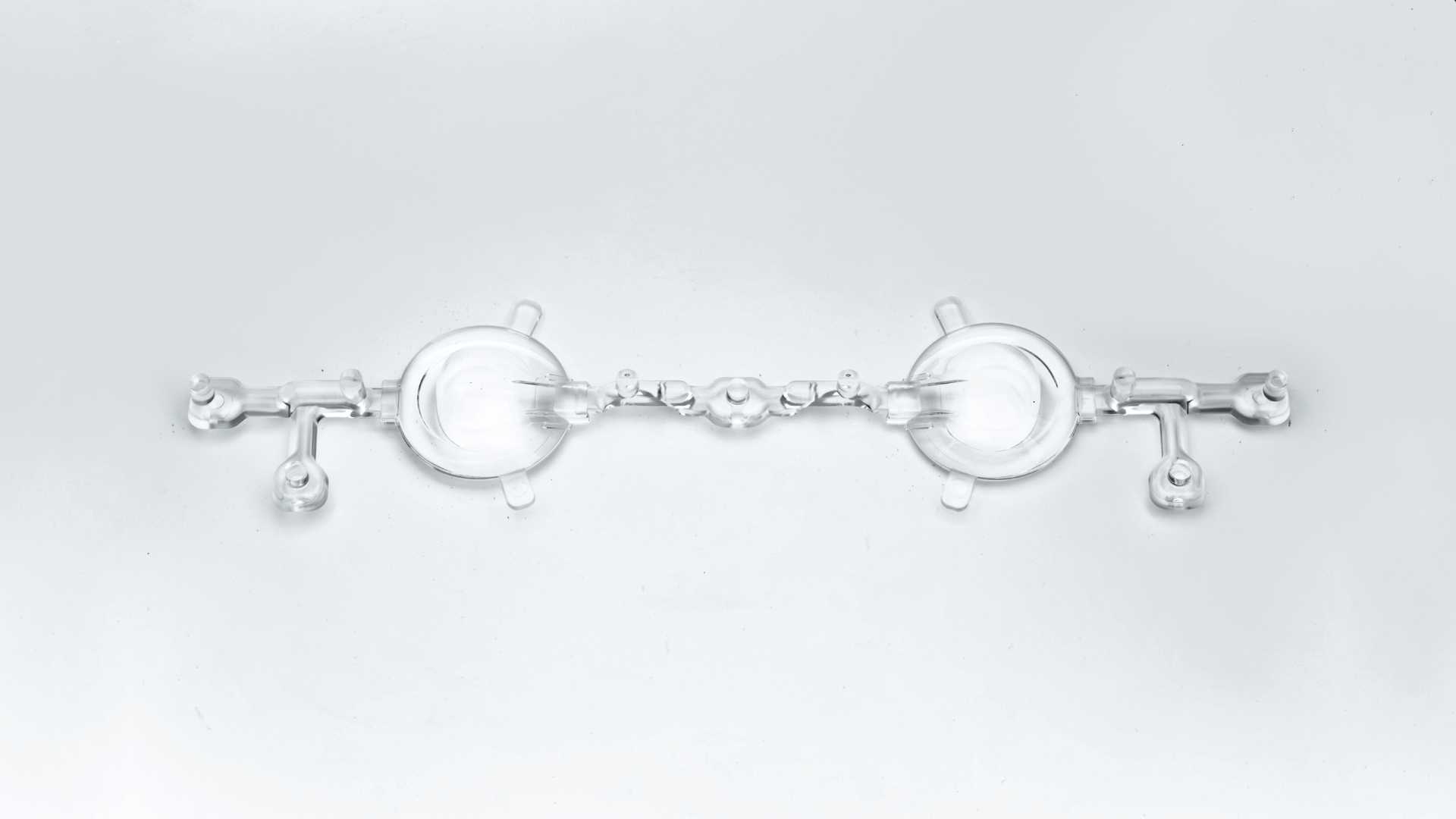 UN700D1M兩板式雙射注塑,生產6層厚壁透鏡技術,實現分層注塑,縮短成型周期,機械手取件后激光切割水口,視覺識別產品缺陷,最后機器人裝箱。