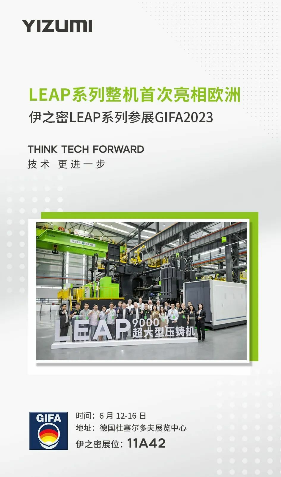 GIFA 2023將于6月12日至16日在德國杜塞爾多夫展覽中心舉行。伊之密以“技術(shù) 更進(jìn)一步”為主題,現(xiàn)場展示多個(gè)智能壓鑄先進(jìn)成型解決方案,其中LEAP系列壓鑄機(jī)將首次整機(jī)參展,亮相海外。
