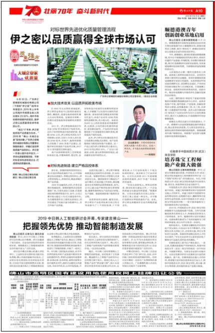 “成立17年來,伊之密始終視產品質量為生命?!?019年“佛山·大城企業家”宣傳對象、廣東伊之密精密機械股份有限公司董事長陳敬財表示,懷著打造世界級質量產品的初心,伊之密一手潛心提升技術實力,一手優化質量管理流程,不斷對標全球先進制造企業,打造領先的質量標準。