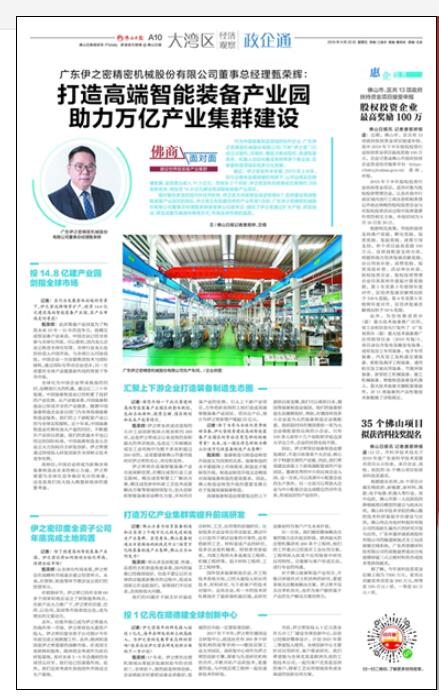 轉載9月20日《佛山日報》“大灣區經濟觀察”伊之密董事總經理甄榮輝專訪: