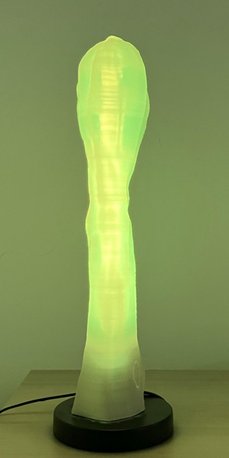 涌泉燈的設計來自同濟大學客座教授楊威杰。該產品從噴泉水形態獲得靈感,充分發揮3D打印技術的自由度,體現出3D打印處理材料和產品形態的優越性,最大化程度展現產品的形態和材料優勢。似泉水噴涌的造型將自然形態與室內空間進行融合,能應用于多種場景,體現出高格調的氛圍。