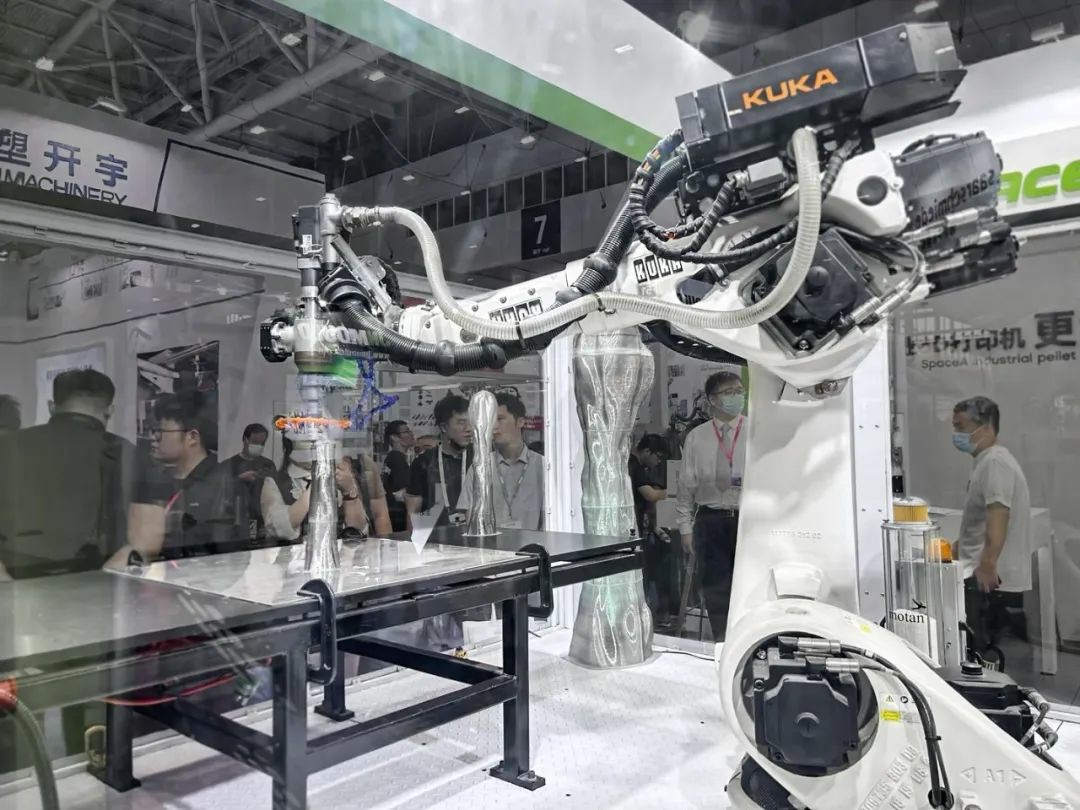 一直以來,效率與強(qiáng)度是阻礙3D打印技術(shù)涉足大尺寸產(chǎn)品生產(chǎn)的重要因素。伊之密SpaceA工業(yè)3D打印機(jī)直接使用顆粒原材料,通過自主設(shè)計(jì)的緊湊型螺桿擠出機(jī),對原材料進(jìn)行塑化,實(shí)現(xiàn)快速高效打印。此外,借由6自由度機(jī)器人帶動(dòng),SpaceA的打印范圍可以達(dá)到2×1×2m,滿足大尺寸產(chǎn)品需求。同時(shí),機(jī)器人的高自由度也為SpaceA帶來了出眾的靈活性,可以實(shí)現(xiàn)打印角度變換、為任意曲面打印等等復(fù)雜打印功能。SpaceA的打印速度可達(dá)50mm/s,生產(chǎn)效率超過1kg/h,配合直徑0.3-5mm可靈活替換的射嘴,可以滿足不同精度、不同尺寸產(chǎn)品的高效生產(chǎn)。SpaceA還提供豐富的拓展項(xiàng)供客戶選擇,為客戶訴求提供定制化服務(wù)。