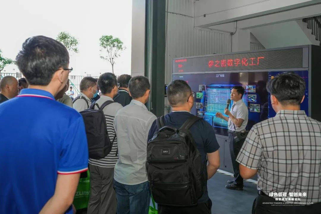 在參觀活動中,嘉賓們對伊之密橡膠機產品和智能制造解決方案表現了強烈的興趣,紛紛點贊伊之密橡膠機的創新能力,并高度認可了“伊之密矢志成為成型裝備領域世界級企業”的發展路徑,在現場展開了詳盡的交流探討。