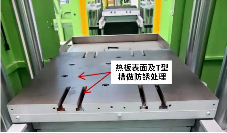 ??橡膠機(jī)在停機(jī)前,應(yīng)將模具的上模板放下,保證模具上下模板是在合模狀態(tài),以達(dá)到對(duì)模腔進(jìn)行保護(hù),同時(shí)需要開模到底,保證鎖模柱塞在主油缸內(nèi),對(duì)柱塞表面起防銹作用,更好地保護(hù)模具和鎖模機(jī)構(gòu);??開模后,對(duì)上下熱板表面及T槽進(jìn)行清潔及加防銹油進(jìn)行防護(hù)處理。