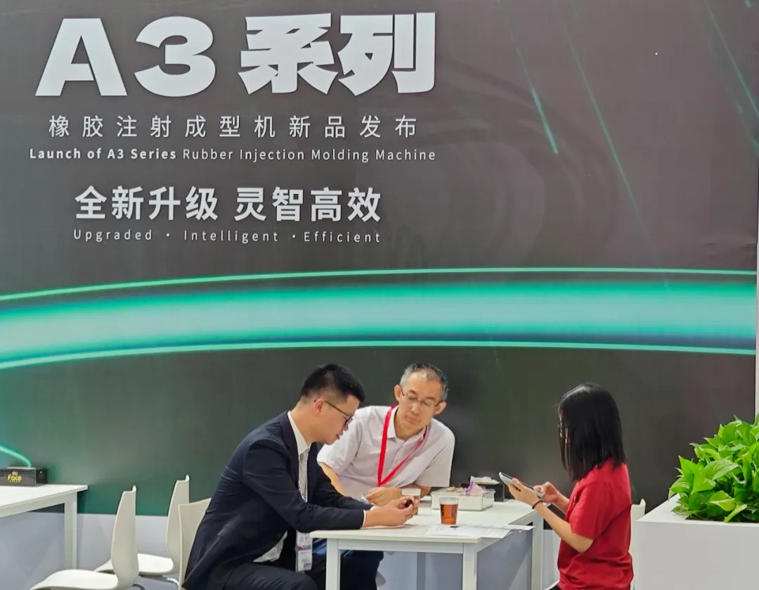 廣東伊之密精密橡塑裝備科技有限公司(以下簡稱:伊之密橡膠機)作為此次展會的重要參展商之一,現場展示了伊之密連接全球智慧,匯集專業能力的杰出產品。尤其是A3系列橡膠注射成型機首次登場,其在智造、至簡、綠色、安全等方面的創新設計,吸引了商客的關注與好評。