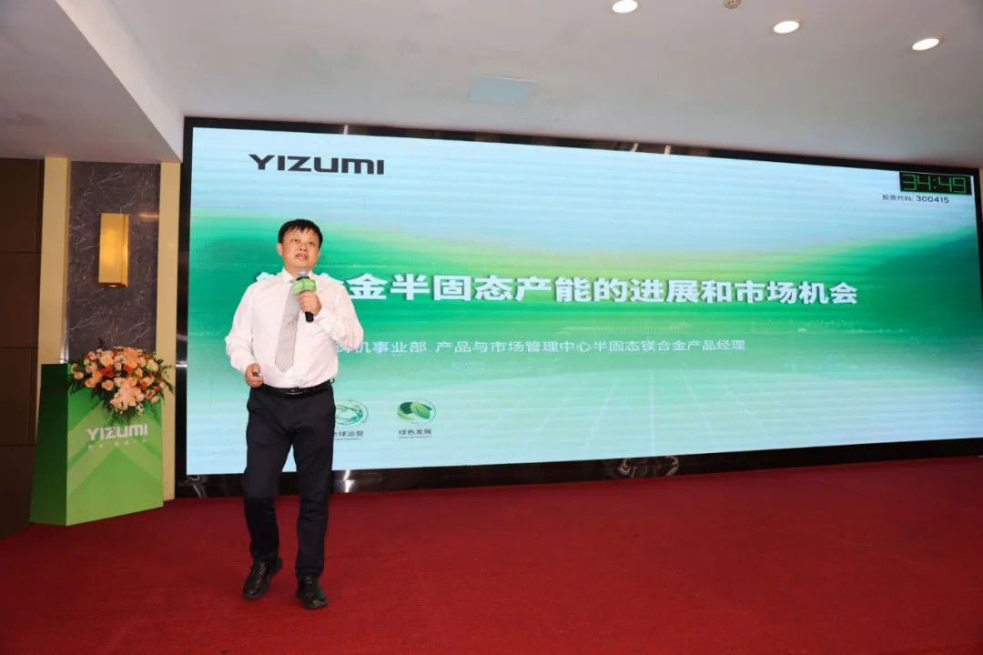 伊之密半固態鎂合金市場部經理陳勇則圍繞《鎂合金半固態產能的進展和市場機會》展開分享。他詳細闡述了半固態鎂合金成型技術在新能源汽車、運動出行、3C產品、低空經濟、人形機器人等多個領域的廣泛應用,尤其在提升電動汽車續航方面潛力顯著。陳勇先生表示:“伊之密已交付的UN6600MGII?Plus超大型鎂合金注射成型機,其供料能力達36公斤,能更好地滿足新能源汽車、機器人及低空飛行器等領域對大型一體化鎂合金件的需求。公司還將根據市場需求動態優化鎂合金設備產能,持續響應下游產業對輕量化方案的升級需求。”