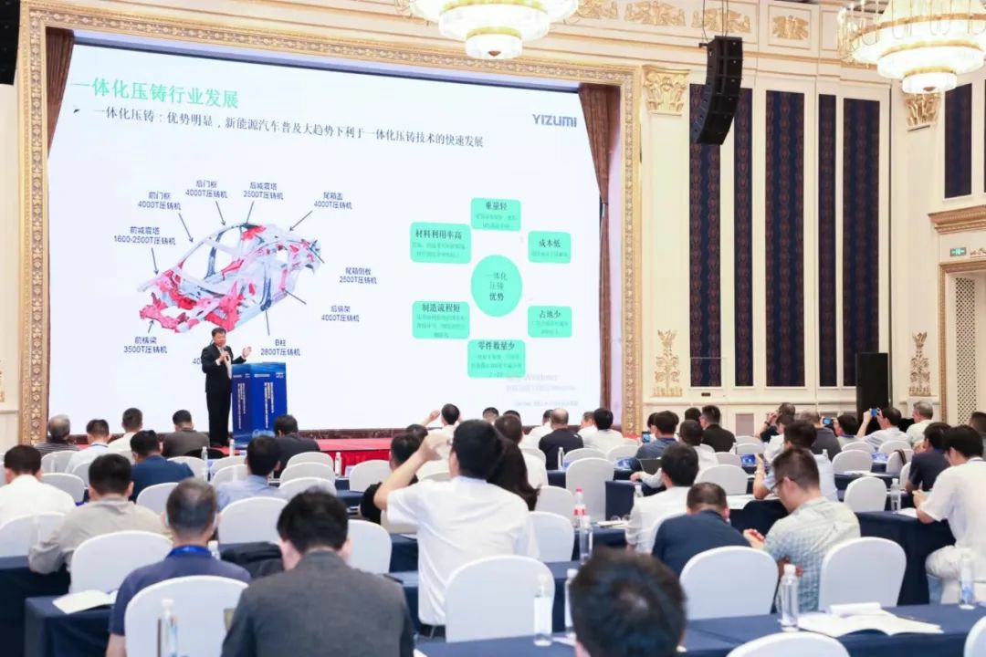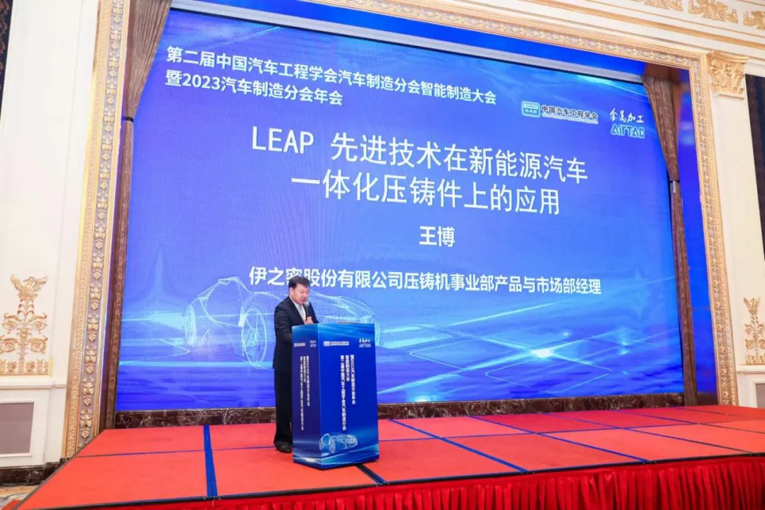 會上,伊之密股份有限公司壓鑄機事業(yè)部產(chǎn)品與市場部經(jīng)理王博發(fā)表了題為《LEAP先進技術(shù)在新能源汽車一體化壓鑄件上的應(yīng)用》專題報告。他介紹了一體化壓鑄的發(fā)展歷程,解析了一體化壓鑄為何受追捧?闡述了伊之密為應(yīng)對一體化壓鑄更高的工藝要求,通過連接全球智慧,從智能壓鑄島集成,模具設(shè)計和鑄造工藝優(yōu)化等方面出發(fā),讓技術(shù)得到實質(zhì)性的突破,并在關(guān)鍵性能上全面對標(biāo)國際一流壓鑄機型。