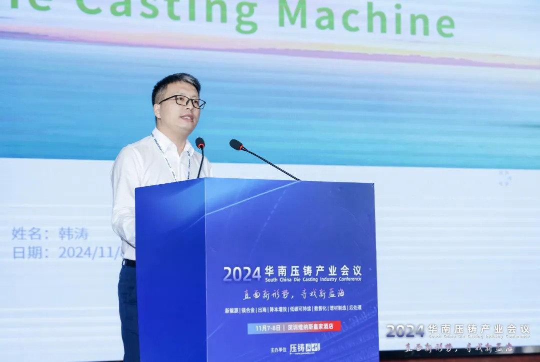 8日下午,大會論壇上迎來了重量級嘉賓——伊之密壓鑄機事業部產品與市場管理部兩板機產品經理韓濤先生。作為國內兩板式壓鑄機領域的專家,他受邀出席并發表了題為《NEXT2——開啟全球兩板式壓鑄機新紀元》的專題報告,成為了全場矚目的焦點。