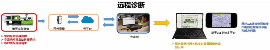遠程診斷聚焦于模壓成型裝備售后服務、遠程調機及故障診斷,可基于遠程診斷系統,解決裝備常見問題,提高服務效率,降低服務成本,賦能客戶全面設備管理。