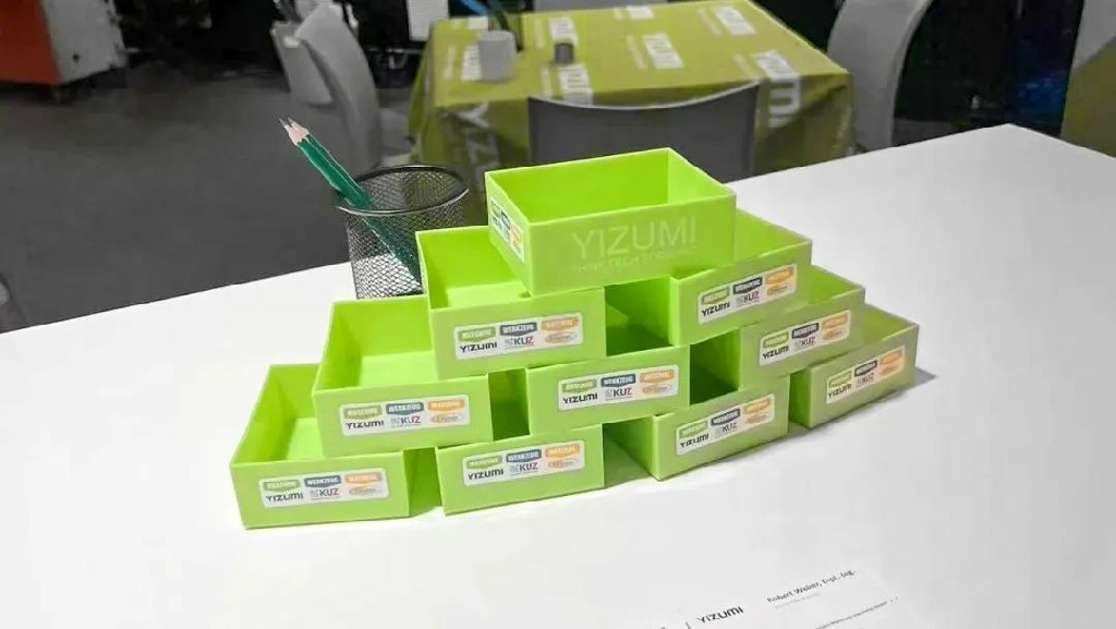 在伊之密展位上(展位號:5/ M1),不僅擺放了款式多樣的塑料制品,還運用電動注塑機FF120,現場展示螺絲工具箱成型解決方案。