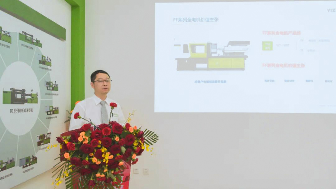 伊之密二板機市場拓展線總監兼汽車行業線總監彭曉平分享了《創新成型工藝技術》的專題演講,伊之密全電動市場拓展線總監劉銀則探討了《全電動智能注塑帶來的變革》,伊之密客戶服務部經理汪志鵬則介紹了《注塑4.0之科學注塑成型》。