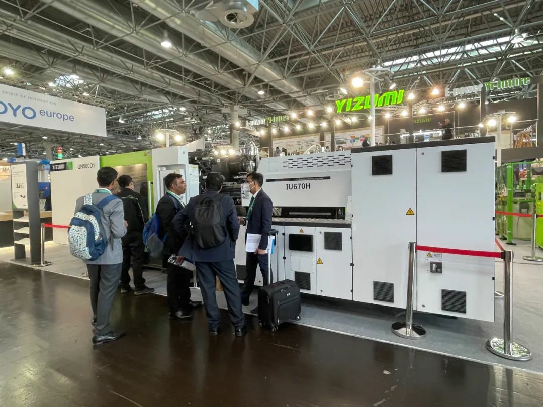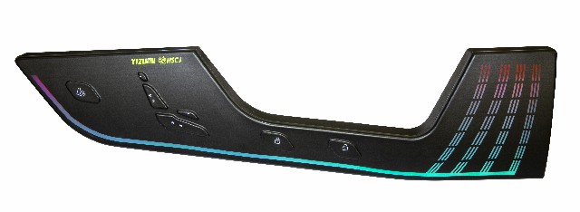 此次K展, D1-E系列油電混合注塑機現場展示汽車側門IMC面板成型方案。據悉,該方案是伊之密協同深圳市合盛創杰科技有限公司,共同打造出汽車3D側門板裝飾產品,該產品是利用IMC模內線路技術制作而成,產品可實現3D立體觸控,在薄膜片材上印刷裝飾圖案,將導電線路印刷在油墨裝飾層上,再通過注塑成型工藝將圖案、觸控電路做成一體的3D智能觸控面板。