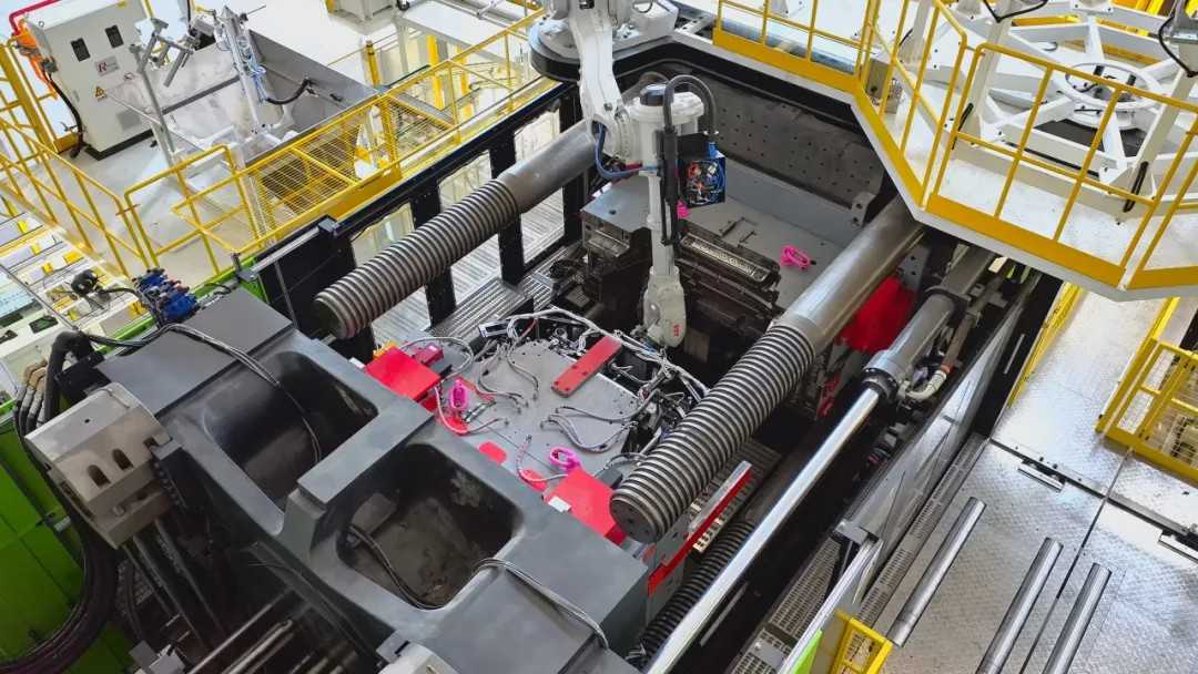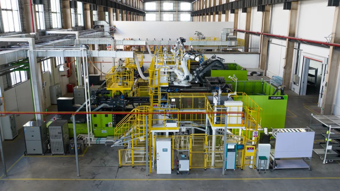 伊之密保險杠全自動整體解決方案集成了先進的注塑技術與自動化生產線,包括但不限于注塑機、自動換模系統、機器人自動化、高效冷卻系統、中央供料系統、MES數據化管理以及AGV智能物流系統,實現了從原材料到成品的全工藝流程自動化。