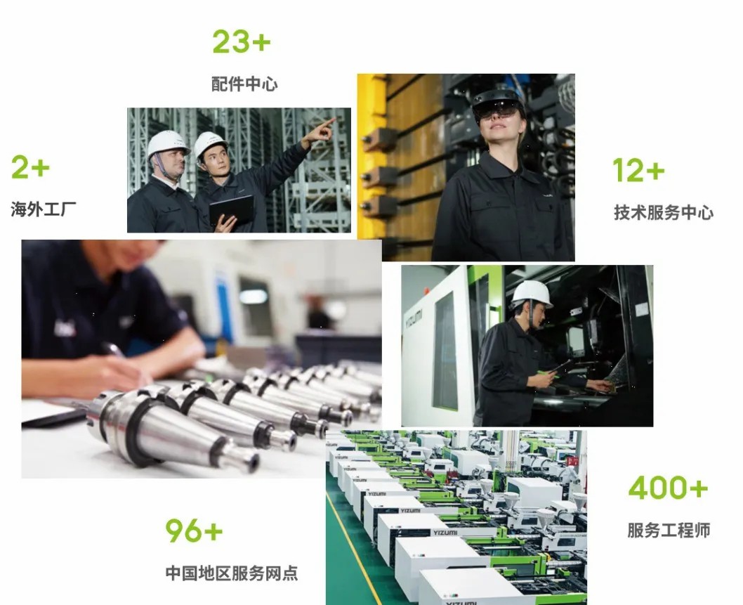 長久以來,伊之密一直致力于為客戶提供高效、專業的技術支持和服務。我們的YFO服務理念貫穿始終,確保客戶的需求得到快速的響應和專業的解決。伊之密服務支持覆蓋全球超246個服務網點和23個備件中心,注塑備件倉庫可實現24小時快速發貨,本部零件當天出庫率高達 96%,確保客戶在最短的時間內獲得所需配件。
