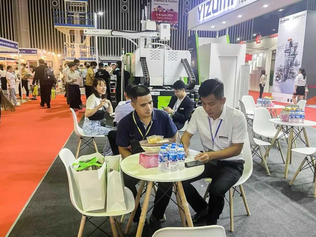 在伊之密展位(A543)上,伊之密越南子公司結合近年來注塑領域的發展趨勢,展出了一些適應越南當地市場需求的注塑成型整體解決方案。現場,伊之密技術人員為商客們提供了詳細的介紹及操作演示,并就注塑機的應用范圍、操作技巧等問題進行了深入的交流。