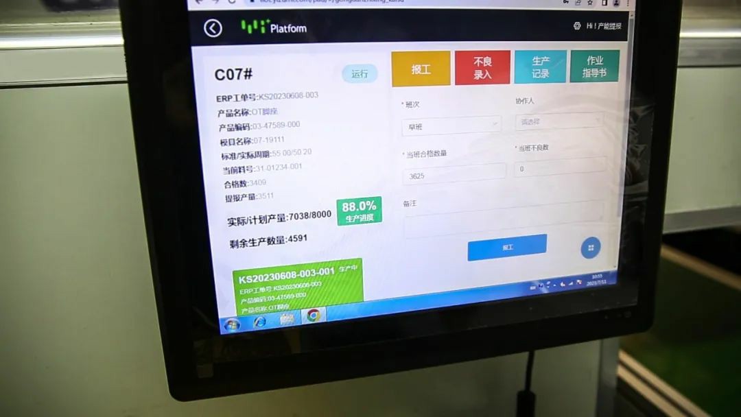 其中,針對生產可視化問題,通過系統自動獲取工單,將生產流程系統化,可視化,工藝進度實時監控,有效管理生產,提高生產效率;在設備信息監控方面,實現生產設備互聯,數據實時采集到系統,管理層可實時動態了解各類設備及生產數據;同時,實現生產信息透明化,打破各環節信息孤島,及時處理生產異常,有效減少損耗及異常,降低生產成本,提高訂單準交率。