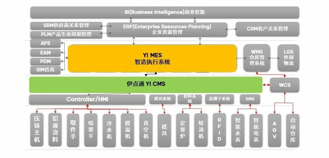 最后是制造運營管理,前面介紹了智能控制技術、設備預測性維護以及工藝智能優化,這三個技術可以說是智能制造技術的細分領域,但最終需要數字化系統,通過將智能化系統、數字化流程工具固化在系統里面,實現一個新的管理模式、決策模式、企業經營模式的變革。在此基礎上,以MES為核心系統,橫向連接PLM、APS、WMS、EAM等,縱向打通IT和OT,將制造業務信息化,賦能運營的數字化和智能化。