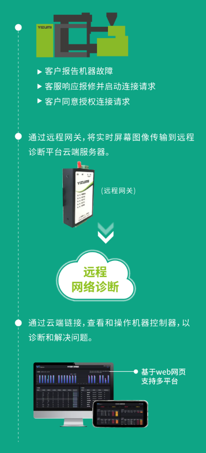 遠(yuǎn)程診斷聚焦于模壓成型裝備售后服務(wù)、遠(yuǎn)程調(diào)機(jī)及故障診斷,可基于遠(yuǎn)程診斷系統(tǒng),解決裝備常見問題,提高服務(wù)效率,降低服務(wù)成本,賦能客戶全員生產(chǎn)保全體系。